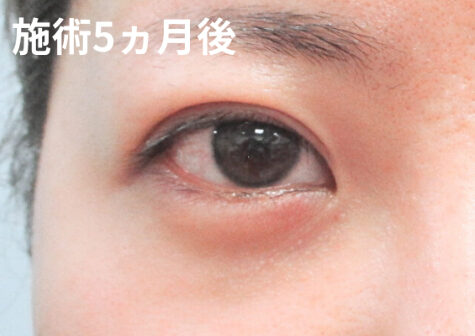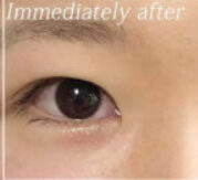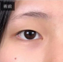 埋没法(3点留)マイクロカット法+上眼瞼脂肪除去手術を同時に行ったことで、幅を広めに手術となった例。