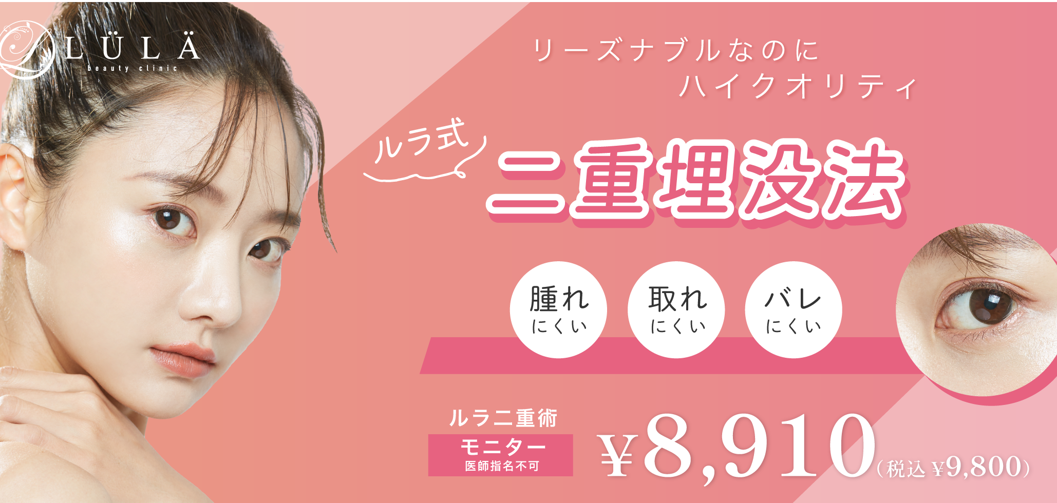 - 二重埋没 1dayルラライン二重術(5年保証・両目2点留め)99,000円(税込)
