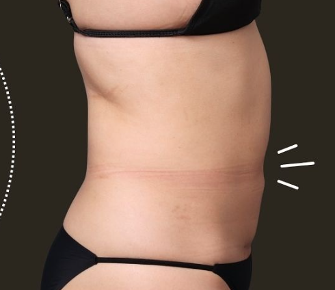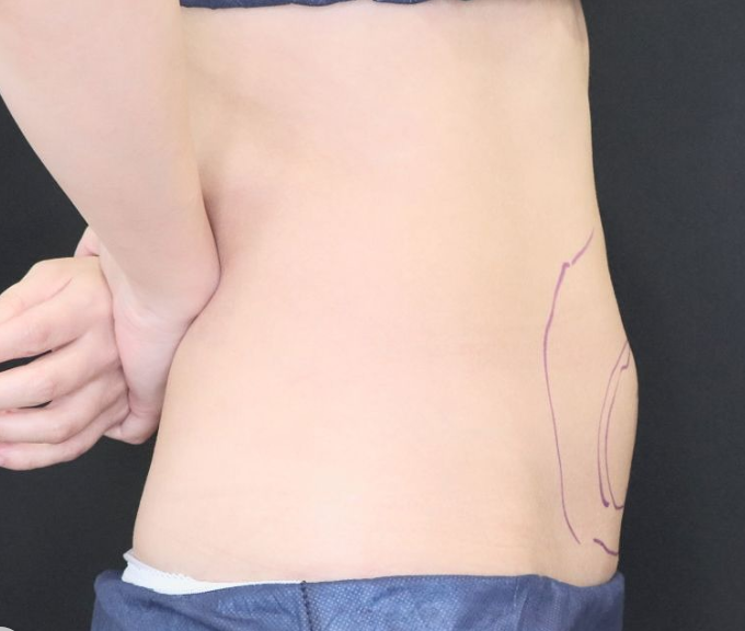 脂肪が特に集中している腹部を重点的に吸引しつつ、胸下のラインまで一緒に吸引することで、ウエストから胸元にかけて凹凸のない、滑らかで美しいラインを実現しました。