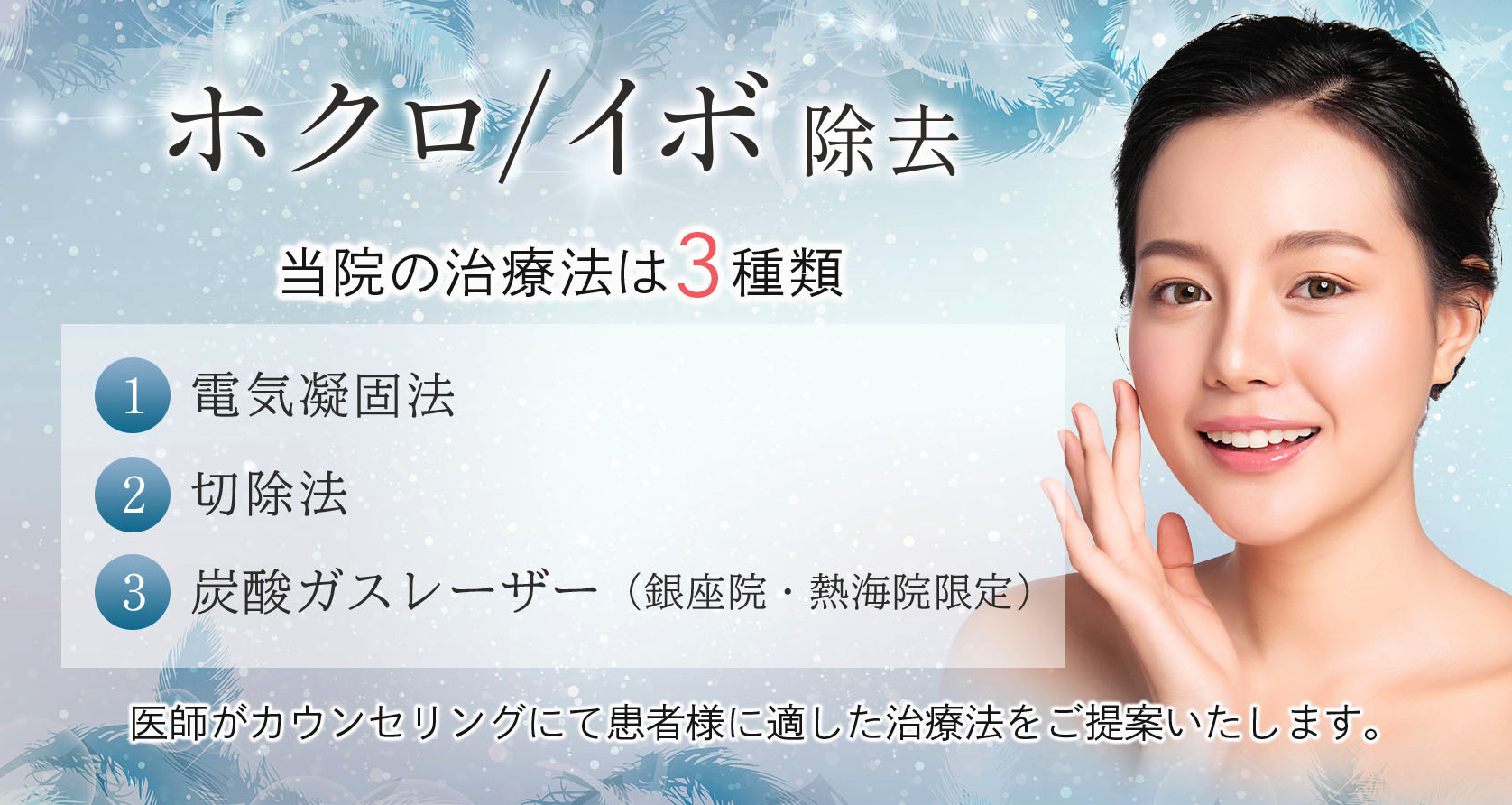 - CO2レーザーや切除法でホクロ取りが可能