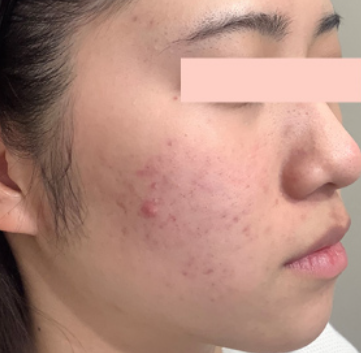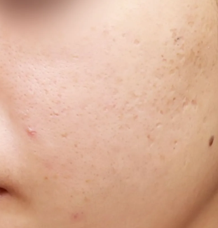 ニキビとニキビ跡(黒)対し、ダーマペン(2回)とサリチル酸ピーリング(1回)の併用施術