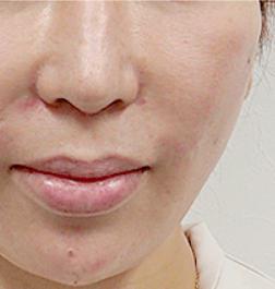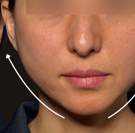 フェイスラインの印象をすっきりと整えるため、左右各3本ずつ計6本の糸によるリフトアップを行った