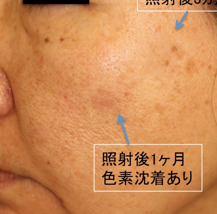 施術後赤みや瘡蓋形成をし、瘡蓋は自然剥離されまれに感染をおこすことがある