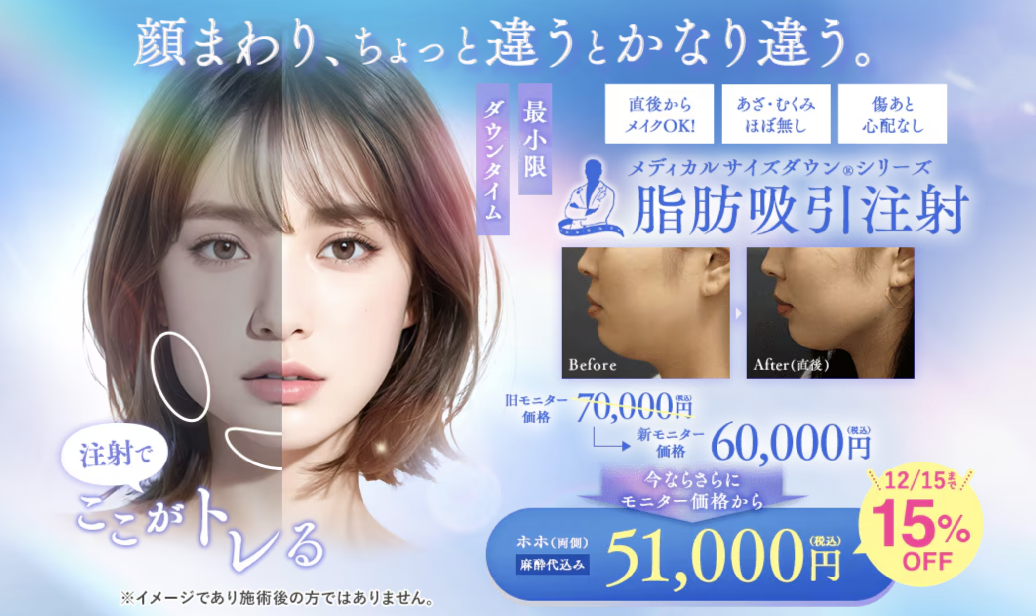 顔の脂肪部分に、極細の吸引管を挿入して、皮下脂肪を吸引する施術