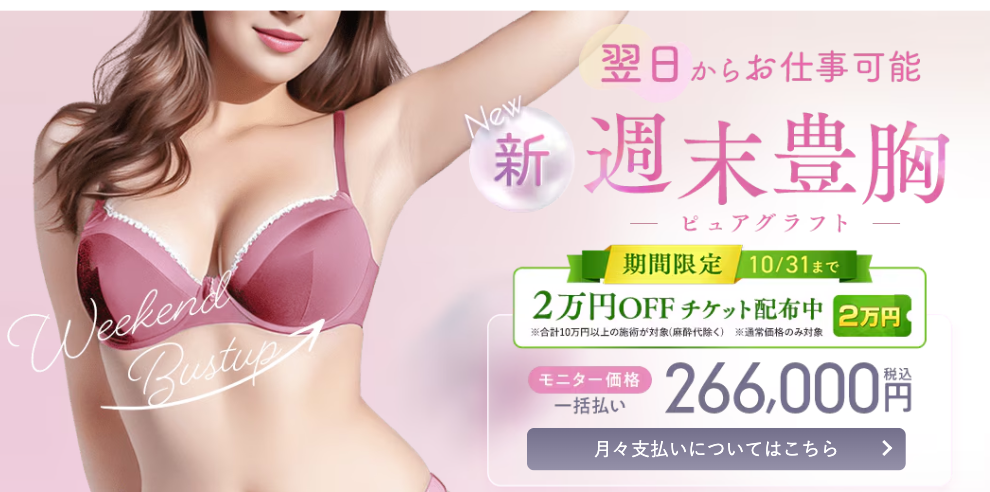 - 脂肪豊胸注射(プチ豊胸)198,000円(税込)