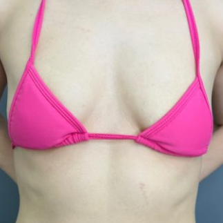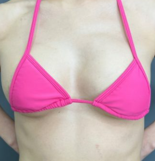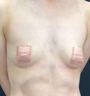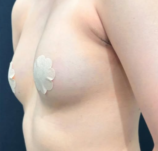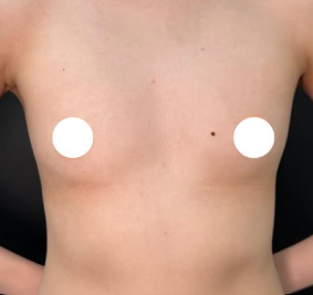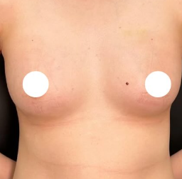 ハイプロファイル型のシリコンバッグを右に260g、左に220gのサイズを大胸筋下に挿入
