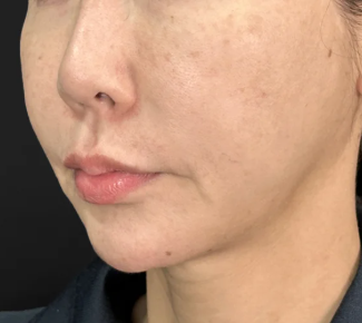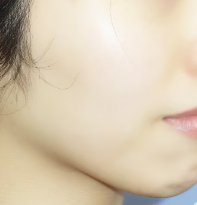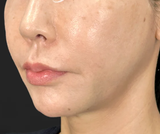 頬のたるみに熱ダメージを与え、コラーゲン収縮作用にてたるみを改善する施術