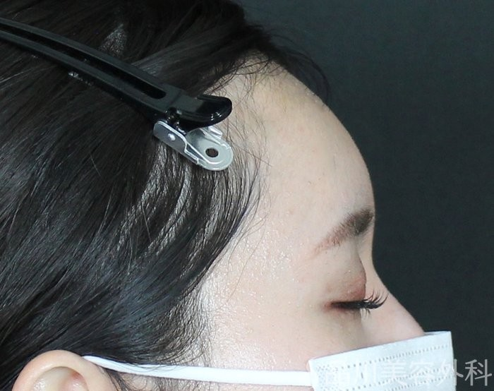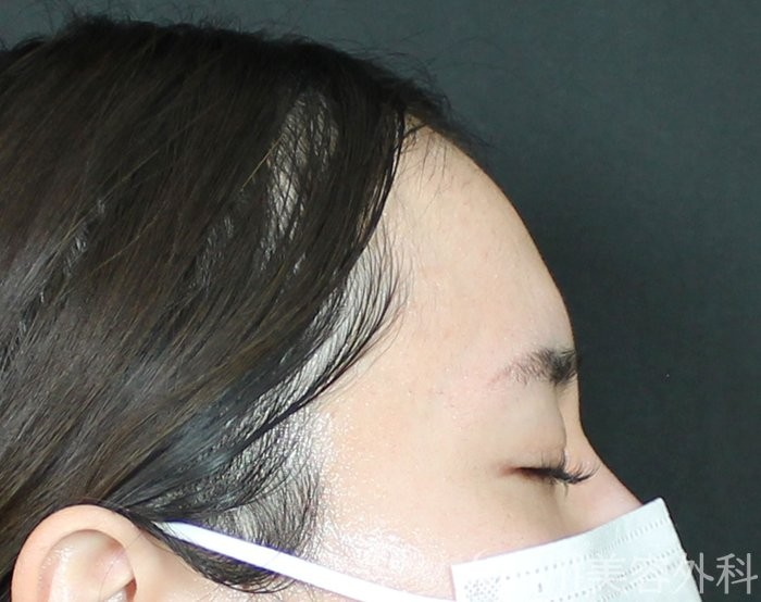 ヒアルロン酸注入により、額の凹みを改善する施術