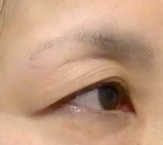 眉毛の下の厚い皮膚を切開し、目を大きくみせる施術