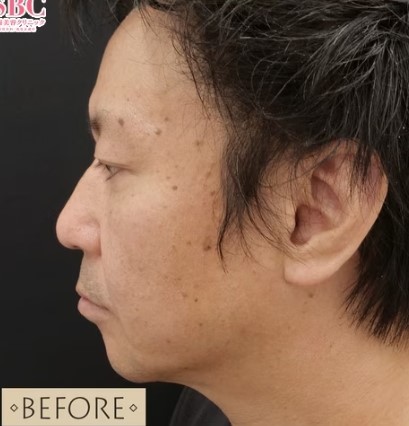 顔全体に広がるシミにピコレーザーにて照射し、無数のシミを改善する施術