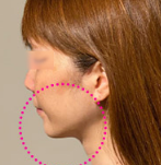 顎下のたるみに、集中的に熱ダメージを与え、コラーゲン収縮にてたるみを改善する施術