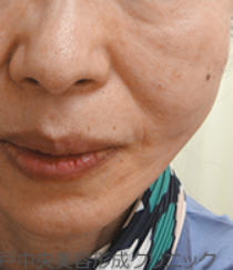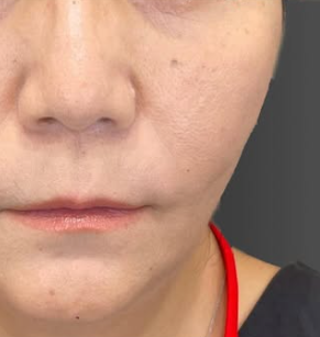 顔のたるみを糸リフトで引き上げ、法令線にヒアルロン酸を入れることでファイスラインを整える