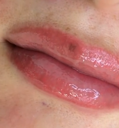 唇のくすみ具合や 好きな雰囲気に合わせて 色素を選択。2回施術