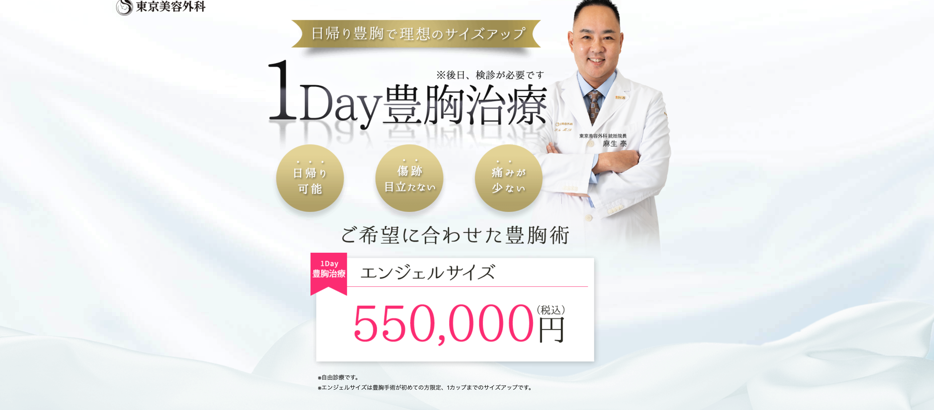 - 1day豊胸治療 エンジェルサイズ550,000円(税込)