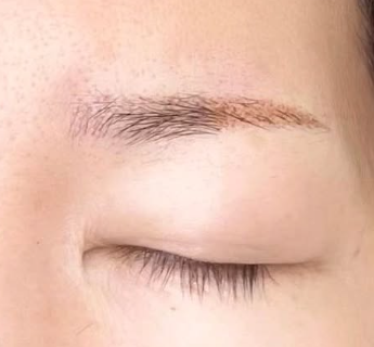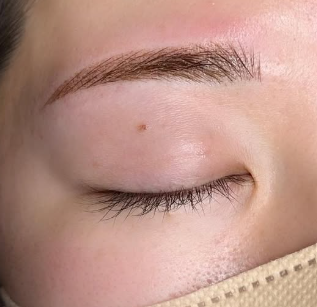 眉毛が生えない箇所には毛並みアートメイクを補って さらにパウダーでふんわりとした仕上がりに
