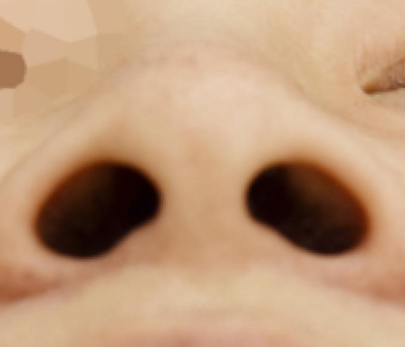 鼻先の軟骨を縫いあわせ、鼻先と小さくする。フレックスノーズ4本併用