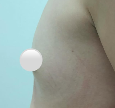 ワキからインプラント(バッグ)を胸に挿入することにより、2カップ以上のバストアップを図る豊胸手術