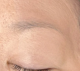 独自のストロークで針にて皮膚を傷つけながら色素をいれ、形や色調を整え消えない眉毛を形成する施術