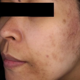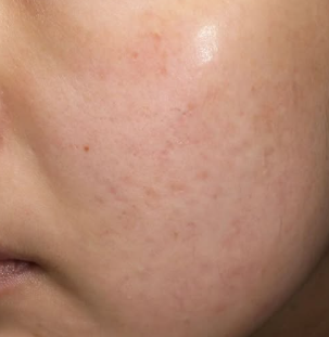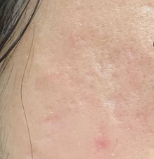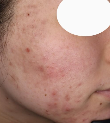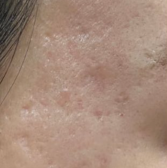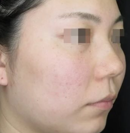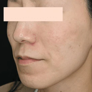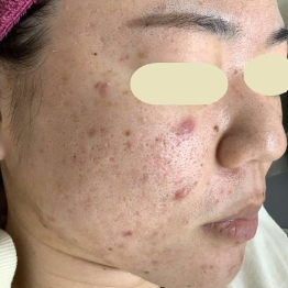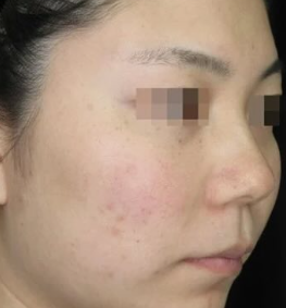 ニキビ跡の色素沈着に対し、フラクショナルレーザーを照射