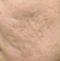 医療用の針でニキビ跡の皮膚下にある線維を切断し、凹んだ状態のニキビ跡(クレーター)を改善する