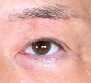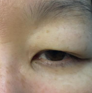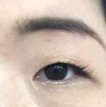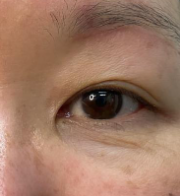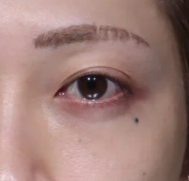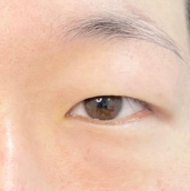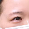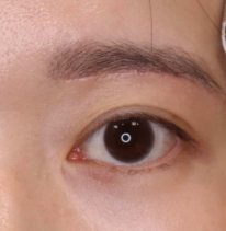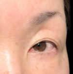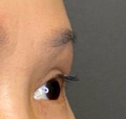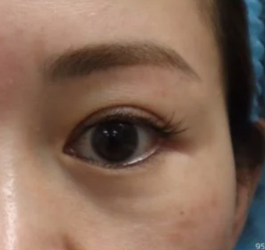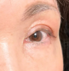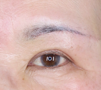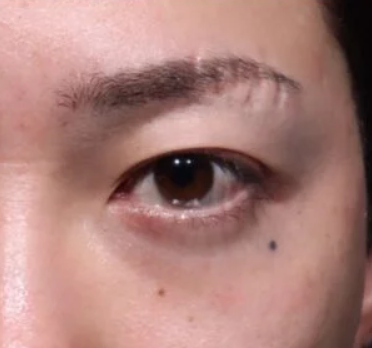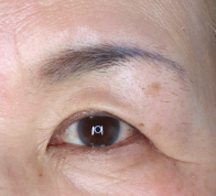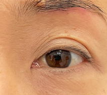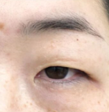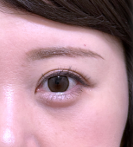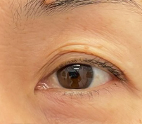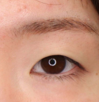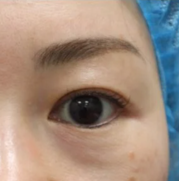 眉毛の直下にある余分な皮膚、脂肪を除去し、たるんだまぶたを改善する。術後二重埋没施術を行う
