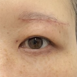- 眉毛の下を切開・縫合し傷跡を目立たせない