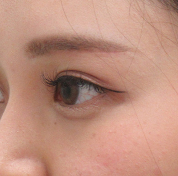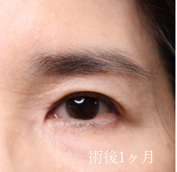 外側の余剰皮膚を眉毛下で切除し、眼輪筋のタッキングで仕上げています。