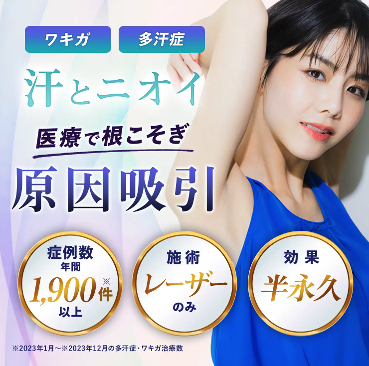 高い実績と多くの症例数を保有する、ワキガ・多汗症専門クリニックです。ミラドライ公式認定医が在籍し、安全で効果的な施術を提供しています。