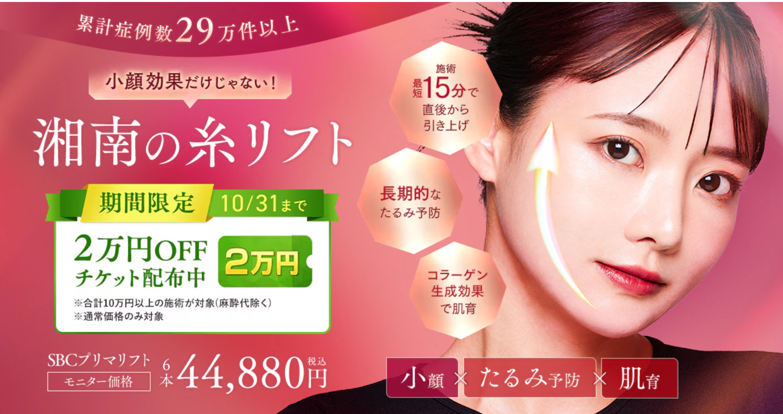 こちらではモニター価格があり、糸リフトは50%オフの値段で受けることができます。