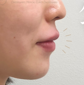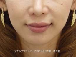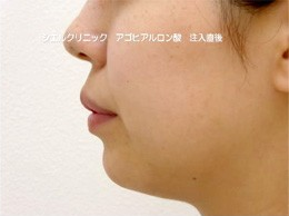 ヒアルロン酸を口角、眉間、あごに注入し形を形成する施術