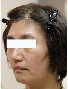 ヒアルロン酸の製剤を注射器で、額、こめかみ、アゴ、頬に注入して形成する施術