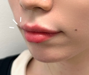 レスチレン・リドを注入し、唇のボリュームアップと人中短縮する施術