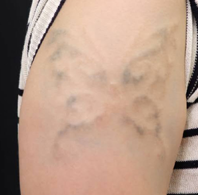 レーザーを照射し色が入っている部分の細胞を破壊し徐々に刺青・タトゥーを除去