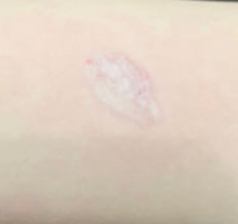 赤み、水疱、色素脱失、肥厚性瘢痕、ケロイド