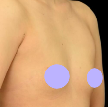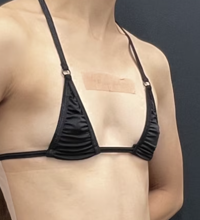 ワキからインプラント(バッグ)を胸に挿入することにより、2カップ以上のバストアップを図る