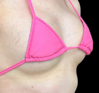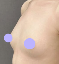 両脇または乳房下溝(アンダーバスト)を小さく切開し、胸の下にシリコンバッグを挿入することでバストのサイズアップを図る