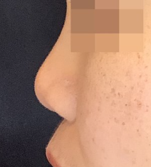 施術後より、痛み、腫れ、むくみ、鼻穴の左右差、鼻の中心ラインのゆがみ、内出血、鼻出血、熱感、まれに感染を起こすことがある