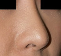 施術後より痛み、腫れ、むくみ、鼻穴の左右差、皮膚の知覚鈍麻、ひきつれ、内出血、鼻出血、感染がまれにおこる