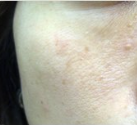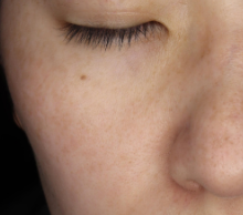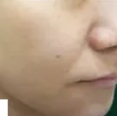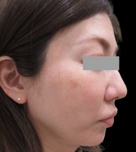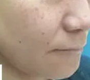 シミの部分にピコスポットを照射し、顔全体にピコトーニングを施しシミを改善する施術