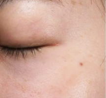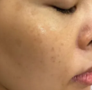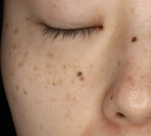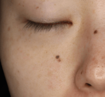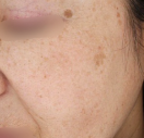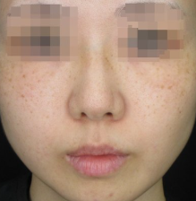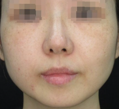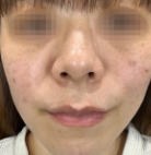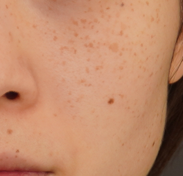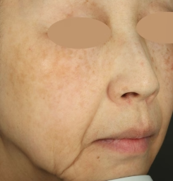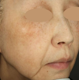 顔全体に光治療を施し、大きなシミにはレーザーを照射しシミを改善する施術