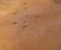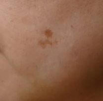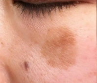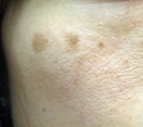 ピコレーザーをシミの部分に照射し、シミ部分が瘡蓋になり自然剥離してシミを改善する施術