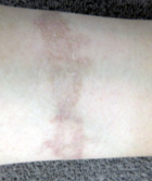 施術後より痛み、腫れ、熱感、瘡蓋形成して剥離する