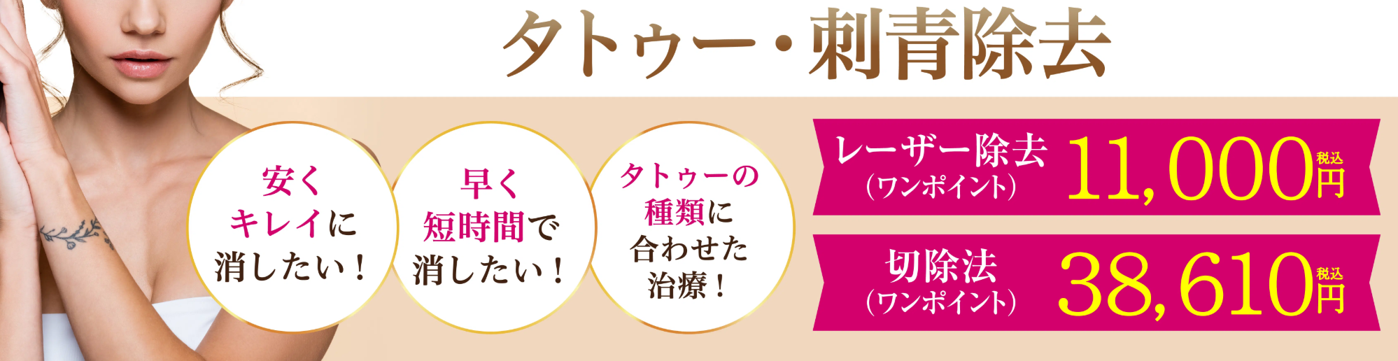 - タトゥー切除術(縫合幅1cm)初回22,000円(税込)