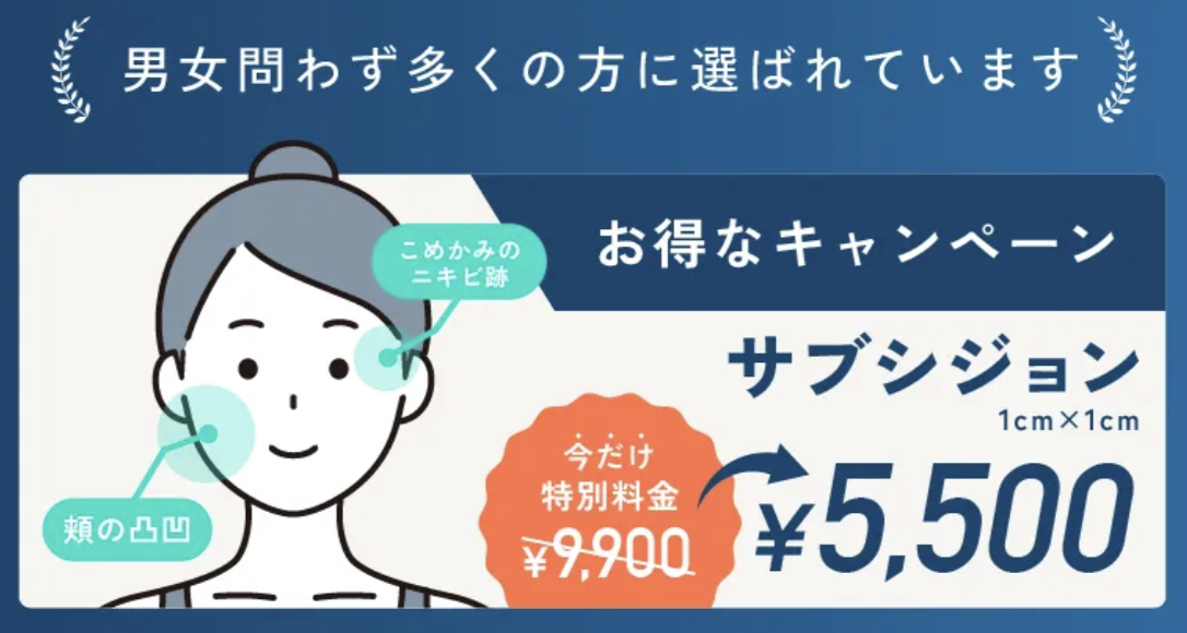 - サブシジョンこめかみ両側、両頬、額、フェイスラインから1部位55,000円(税込)
