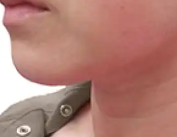 顎下のたるみにピンポイントで超音波を当て、たるみを改善する施術
