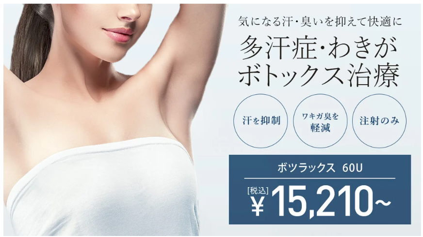 ![]() 広島中央クリニック | 汗止めボトックス注射 ワキ ボツラックス | 33,000円 | 詳細へ |
