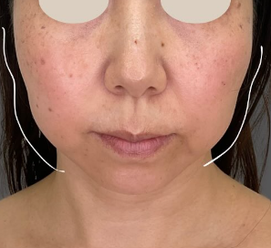 医療素材の吸収糸(PDO)を使用し、たるみ部分を改善。フィオラジグザグ8本使用