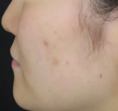 顔に散在するシミに、光エネルギーを照射し、シミを改善する施術